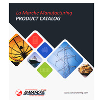 This colorful design features a variety of graphics and photographs related to La Marche's industry and products, arranged in a collage of diamond shapes. The pattern of peaks and diamonds continues on the back cover, along with a blurb detailing the company's history and mission.