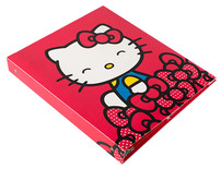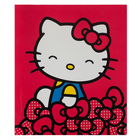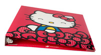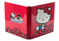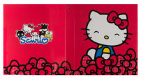 Hello Kitty stars in this fun, feminine design. Perched atop a mountain of pink and polka-dotted bows, the popular character's white fur contrasts the pink background and gives the eye a break from the bright colors. Matching hot pink pockets and reinforced edges add color to the items clasped in the 1" metal rings.