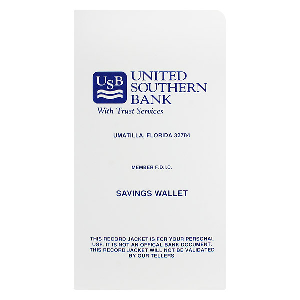 The First Bank of Coastal Georgia is all business with this minimal design that helps clients track their bank receipts. A clean sans serif font clearly labels the folder, while blank spaces let customers write their personal info above the bank's logo. Both interior pockets are reserved for details about their banking transactions. These forms are printed in the same reassuring blue ink as the front cover for a consistent, professional design.