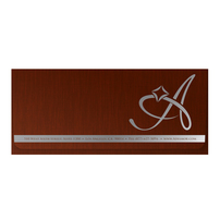 Sophistication meets indulgence in this design for Adiamor. Hot fudge stock is more than a welcome ray of warmth in an industry dominated by plain black designs; its rich, decadent color is reminiscent of precious chocolate diamonds. The shimmering Metallic Silver foil stamping, with the logo on the right and thin line across the bottom of the cover, likewise emulates a diamond shining on a pristine white gold band. The long, slender shape of the cover is similar to a woman's elegant evening clutch, perfect for a store located in the heart of star-studded Los Angeles.