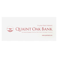 Quaint Oak Bank's document folder uses thin, elegant serif lettering to present an image of professionalism and poise, while the company's tree logo symbolizes stability and a rich history. The red color grabs and excites customers' attention.