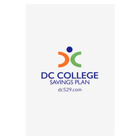 Only DC College Savings Plan's name, logo and web address are on the cover of this clean, crisp design. The logo looks like a human figure while also mimicking the shapes of a D and C. Clients can store an image of their child inside to remind them what they are saving for.