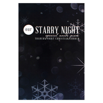 Guests at Traders Point Christian Church's special needs prom can commemorate their night with this enchanting, wintry design. Delicate lights and drifting snowflakes on black panels capture the "Starry Night" theme, while serif and script typography create an elegant, high-end look. Four interior notches hold a photo by its corners, so the subjects stay entirely visible.