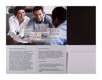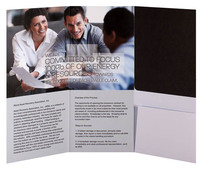 Four-color process printed on both sides of uncoated 100lb Smooth White stock. H4 business card slits on right pocket.