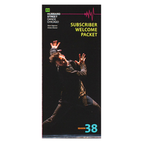 The packet also includes performance dates and a letter to the subscriber about the upcoming season. Frequently asked questions about tickets and the theater are located on the back panel.