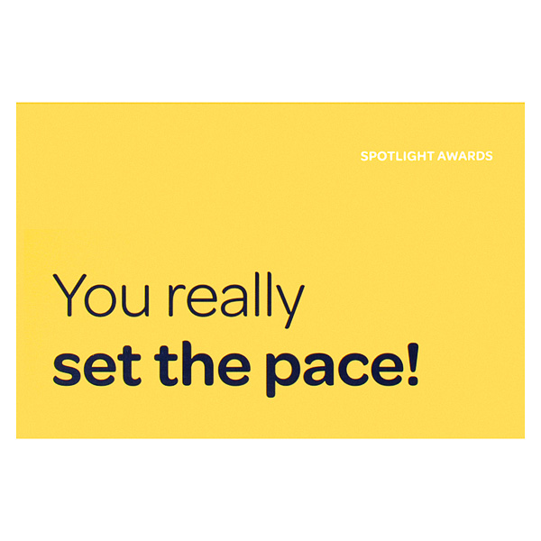 Morton Salt uses its color branding to create an emotional rollercoaster in this design. Bright, cheerful yellow exterior panels create a sense of energy and optimism. Navy blue text congratulates recipients on a job well done.