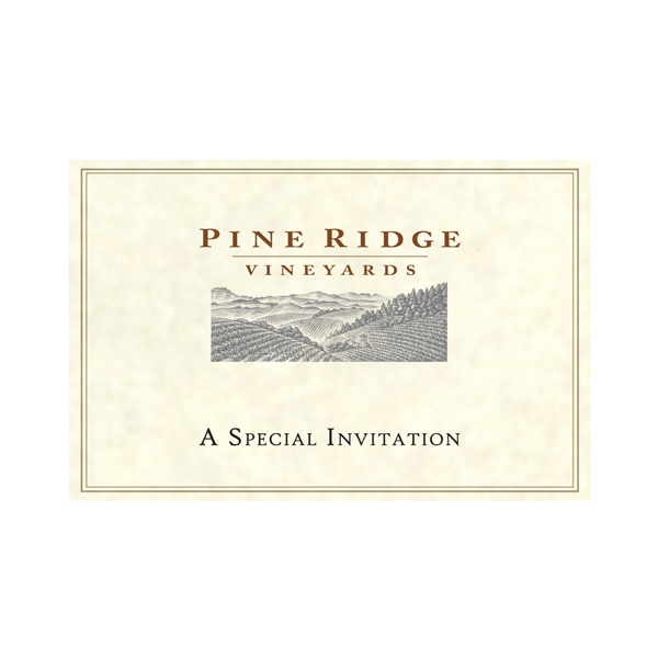 Pine Ridge Vineyards illustrates its namesake with a small black-and-white sketch for a classy, handcrafted look. The winery's name and the line running through it spice up the cover with a russet brown hue, complementing the Warm White stock. The line also marks the upper edge of the sketch, subtly completing the illustration's rectangular shape.