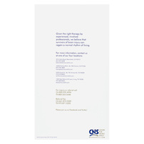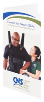 The left inner panel stars another patient regaining her motor skills and a description of the centre. Contact info on the back helps patients and their healthcare providers find the closest location for them.