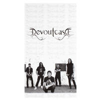 Sharp, swirling letters make up the Devoutcast logo. Its detailed shape is surrounded by white space to draw in the audience's attention. Pale gray repetitions of the logo give the white panel depth and a slightly grunge backdrop.