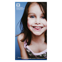 A smiling little girl with two missing teeth portrays the market for Kinder Krowns' pediatric dental crowns. A table on the left panel shows statistics about the brand and its products. Playing children illustrate the "leaps and bounds ahead of the rest" tagline, while a vertical slit holds a DVD that tells dentists more about Kinder Krowns.