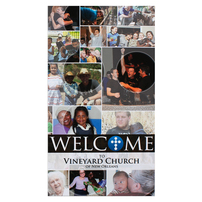 Designed to welcome visitors to the Vineyard Church of New Orleans, this collage shows congregants serving on missions trips, baptizing new believers, and spending time together. The church's logo is hidden on the covers for added visual interest. The left interior panel describes the packet's contents; it also holds a CD or DVD, which can contain more church information or sermon audio to encourage visitors to make the Vineyard home.