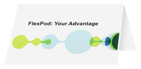 The back features green and blue circles to illustrate how the product connects various technology elements in a new, secure way. FlexPod's slogan, "Your Advantage," assures customers that the company has their best interests in mind.