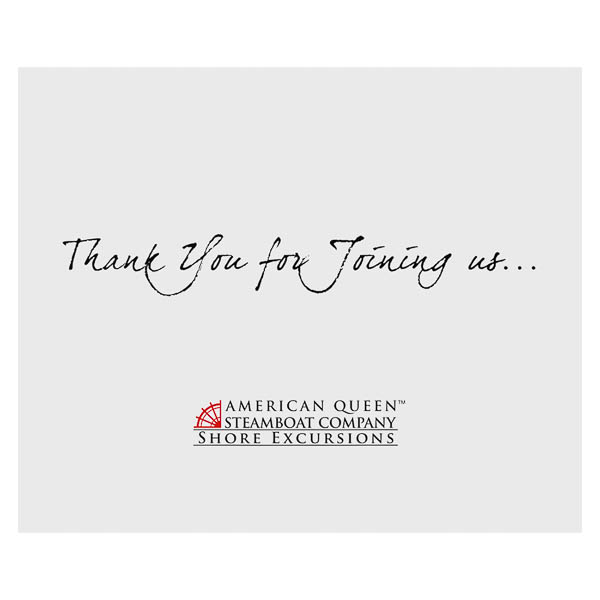 A script thank-you note adds an old-fashioned touch, the perfect match for a company that utilizes old time travel methods. The brand's logo on the cover and frame spark viewers' interest in taking their own steamboat cruise.