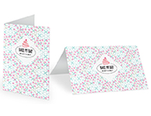 Send a thank you note or personal message in a custom-printed greeting or note card that matches your brand.