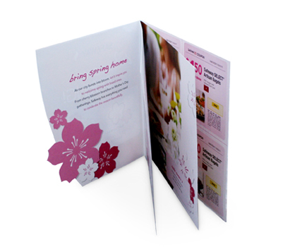 • Openings and closures – Printed media that has more than one page can be die-cut with a unique opening or given tabbed closures. Opening and closure cuts can also change how the media is manipulated—i.e. whether it opens like a book, like a gate or in a completely custom manner.