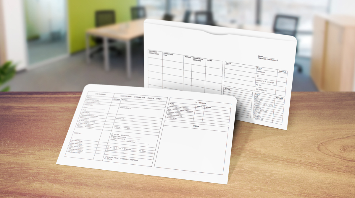Product: Legal Size Top Tab File Jacket printed with 1 PMS color on uncoated 150lb White Tag stock.