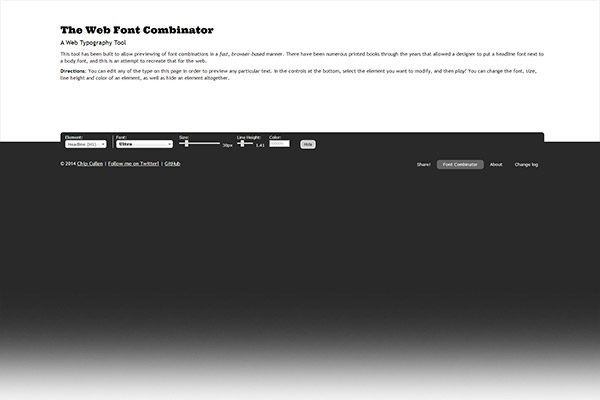 This is a web-based tool that lets you pick the best combination of fonts for your headline and body text by allowing you to play with the font style on the website itself. Just click a group of text and use the tools on the bottom of the page to alter the appearance so you can see what combination you like best.
