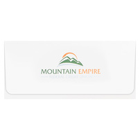 Orange and green brand colors portray a mountain sunset on the flap of this document folder. Light blue text softens the design with a cool color. On the back panel, contact information and business hours on the front panel help recipients get in touch with Mountain Empire Federal Credit Union quickly and easily.