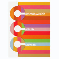 The variety of colors on the cover of this design illustrates the array of people the Commonwealth Catholic Charities helps. Three colorful capital C's are vertically aligned to spell out the organization's name.