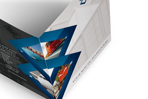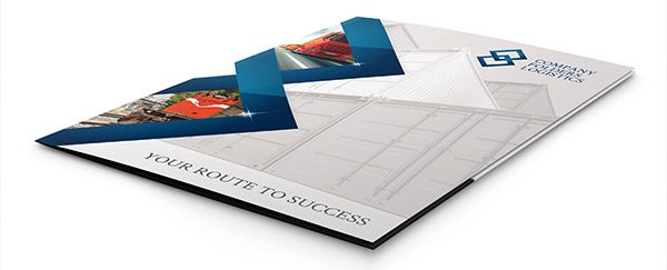 A sharp, polished vector logo resembling two interlinked metal diamonds adorns the cover of this design for a logistics business. It’s an energetic corporate identity that strongly conveys a sense of professionalism and expertise.