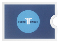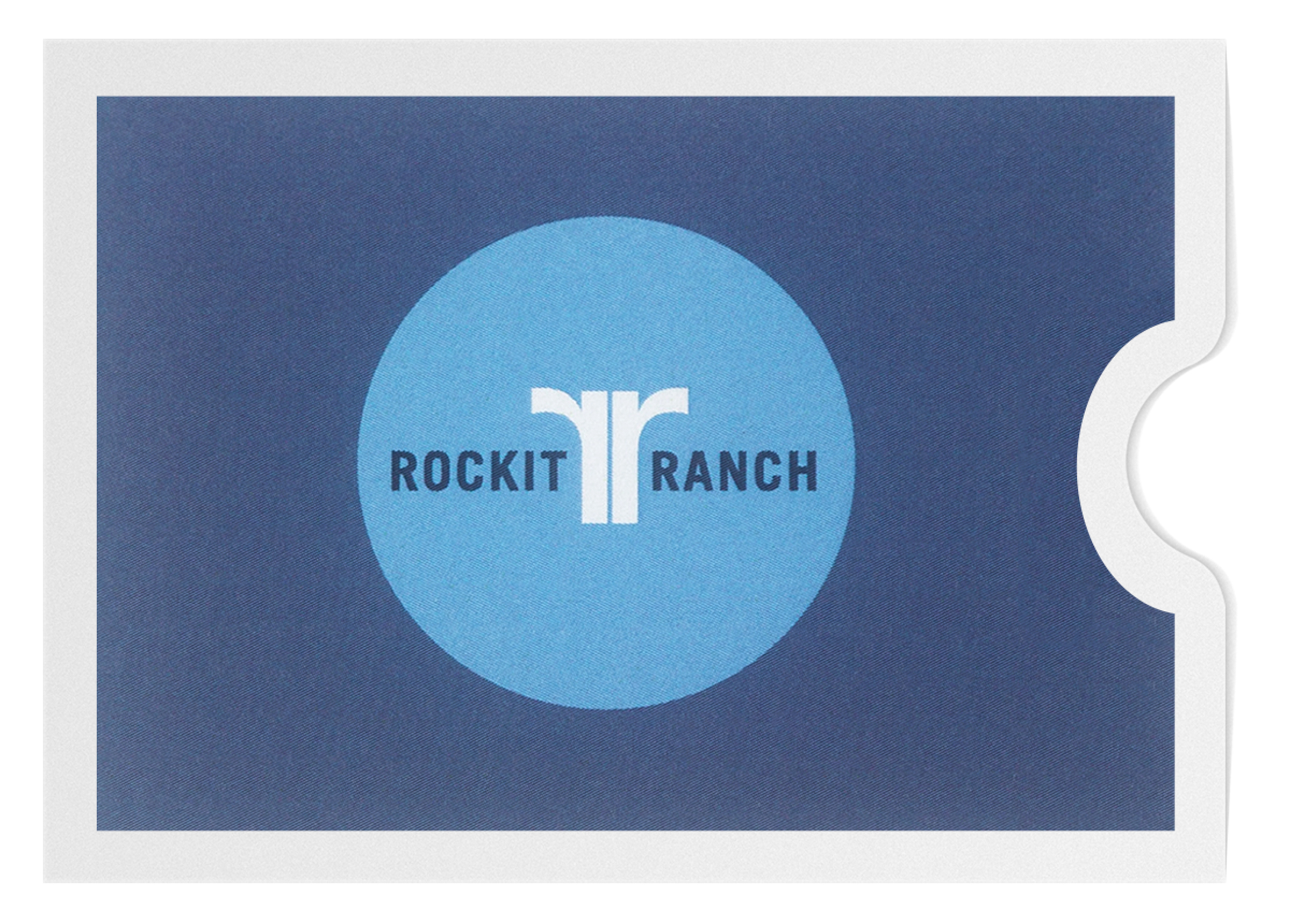 Rockit Ranch promotes nightlife with its signature blue on blue color scheme, which resembles an evening sky. Its use of only the back-to-back "r" logo on front creates a spacious design for increased brand awareness. Blank lines on the back let customers write in the recipient, giver, and amount of the gift card to one of Rockit Ranch's restaurants or nightclubs.