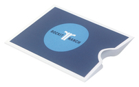 Pin This GraphicA total-coverage pocket secures a standard gift card, hotel key card, or other 3 3/8" x 2 1/8" print media. Thumb notches make it easy to insert or extract the card. Portrait orientation works well for presenting brand or hotel information, such as gift amounts, check-in times, or important phone numbers. Landscape orientation's wider design canvas is better suited to photography, illustrations, or even maps. Digital printing makes images crystal clear for high-end visual impact. Print limitations apply: design elements cannot cross score lines.