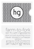 Geometric patterns draw attention to Honeygrow's round logo in the center of the front panel. Recipients can read about the restaurant's wholesome stir-fry ingredients on the back cover. The sans serif font is thin and stylish—alluding to the benefits of healthy eating habits.