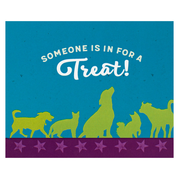 Inside, the top panel leaves a space to write the names of the recipient and gift giver, as well as the amount. The message "Enjoy" also is on the top, with a paw print to dot the "j." The store's logo and website are on the back (along with social media logos) so people can find the closest location to spend their gift cards.