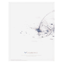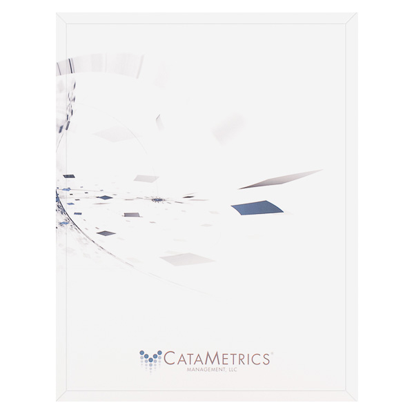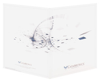 Exploding blue, white, and gray tiles across CataMetrics' cover design symbolize progress and action. White panels balance this sensation with a color that implies precision. At the bottom of the panel, the brand logo and name add stability to the organized chaos above.