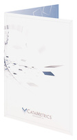 Four-color process printed on both sides of 130lb C2S White Dull stock. Coated with Satin Aqueous. H2 business card slits on right pocket.