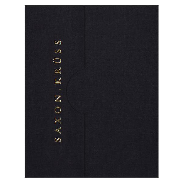 Since Saxon Kruss provides gemological services to jewelers, the gold foil stamp on this certificate cover is quite fitting, especially against the Deep Black Linen stock. It evokes feelings of luxury, elegance and power.