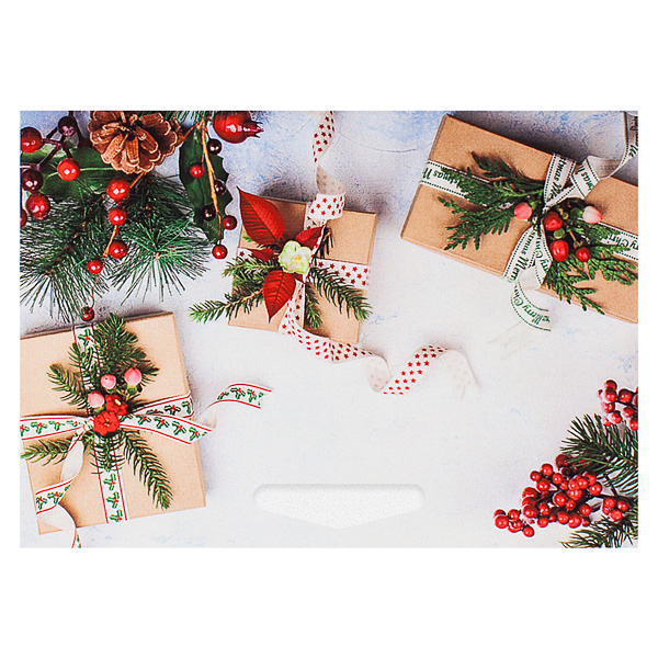 'Tis the season for giving! Graceway Supermarkets' gift card holder is printed with neatly wrapped presents and sprigs of holly. Its red and white interior adds a holiday color scheme and wishes recipients a merry Christmas. Blank lines let gift givers write in names and amounts. Only the back panel is all business: it features icons for Graceway's three locations, as well as the brand name and values.