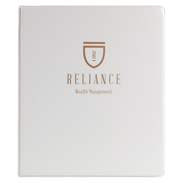 What look like leather panels are actually made of sturdy, water-resistant vinyl. As with leather, the synthetic surface has a shiny finish suited to highly professional settings and can be customized with your original branded design. Its matte interior houses introductory or non-hole punched papers in a heat sealed left pocket, ensuring that these items are just as visible as those in the binder rings. The three-ring metal binding mechanism makes inserting, removing, and organizing 8 1/2" x 11" materials a snap.