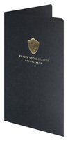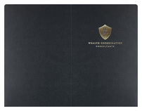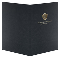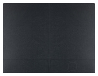 1 foil stamped area on Side 1 of uncoated 100lb Deep Black Linen stock. C1 business card slits on right pocket.