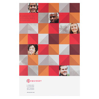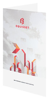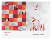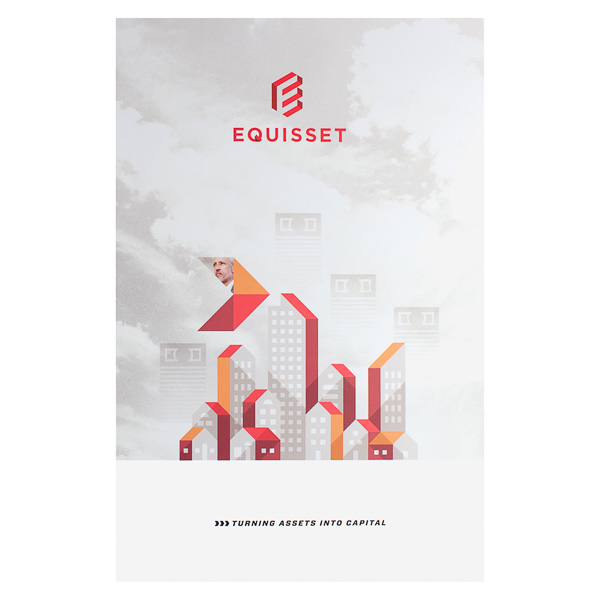 Equisset conveys growth with illustrated skyscrapers that rise to varying heights. Vivacious red and orange accents attract attention to the graphics, the lender's logo, and the single photo hidden in the design.