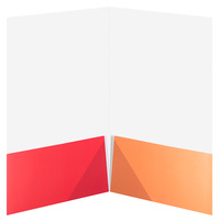 Four-color process printed on Side 1 of 14pt C1S White Semi-Gloss stock. Coated with Matte Aqueous. H3 business card slits on left pocket, with H2 business card slits on right pocket.