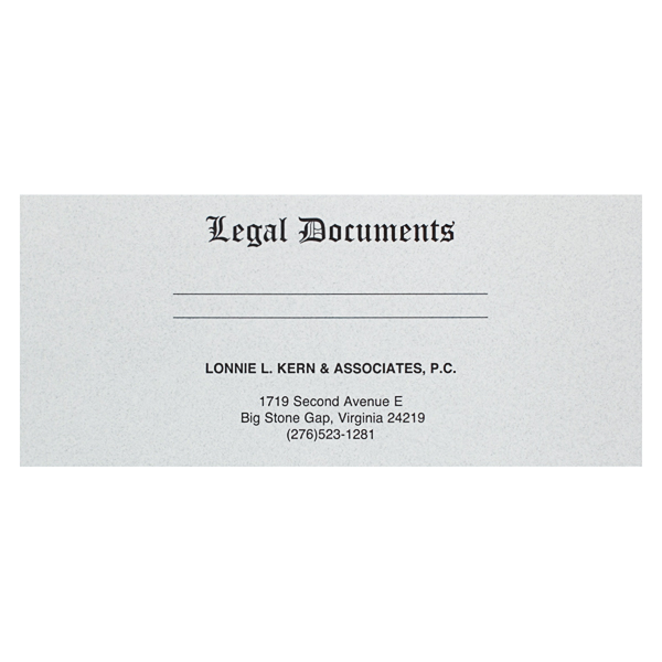 Speckled gray stock is reminiscent of a stone, perfect for a brand that's based in a town called Big Stone Gap. Bold black typography and a medieval-style display font appear strong and sophisticated. Contact information on the front panel makes it easy for clients to get in touch with Lonnie L. Kern & Associates for future financial needs.