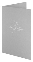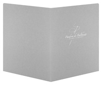 1 foil stamped area and 1 embossed area on Side 1 of uncoated 100lb Sterling Gray Linen stock. C1 business card slits on right pocket.