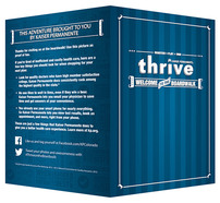 This playful photo folder eschews the clinical look of other healthcare providers with its light and dark blue stripes resembling an old-style carnival booth. Distributed at Colorado's Boulder Creek Festival, this design celebrates food, fun, and friendship with a photo taken by a Kaiser Permanente employee.