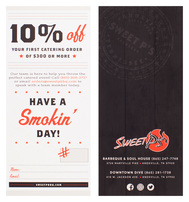 It's worth mentioning that you should think outside of the box when designing your rack card as many can take on a second purpose aside from informing its recipients. For example, food rack cards can double as take-out menus and a rack card for a special event can act as a memento or keepsake.