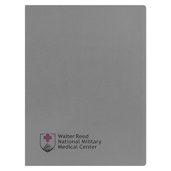 The Walter Reed National Military Medical Center honors servicemen and women with this dignified design. Its soft gray stock is simple and reminiscent of the dull colors that commonly appear on military fatigues and equipment. The logo at bottom left bears a purple cross to salute wounded soldiers and the Capitol Building dome to indicate its role as the nation's leading military hospital and proximity to Washington D.C.