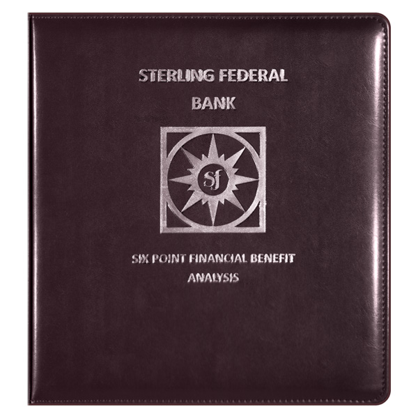 This 3-ring binder design from FirstLine Financial features the company's logo debossed on the front cover for a look that's subtle and understated, but providing an interesting textural effect. The midnight blue vinyl gives the design a serious, professional tone.