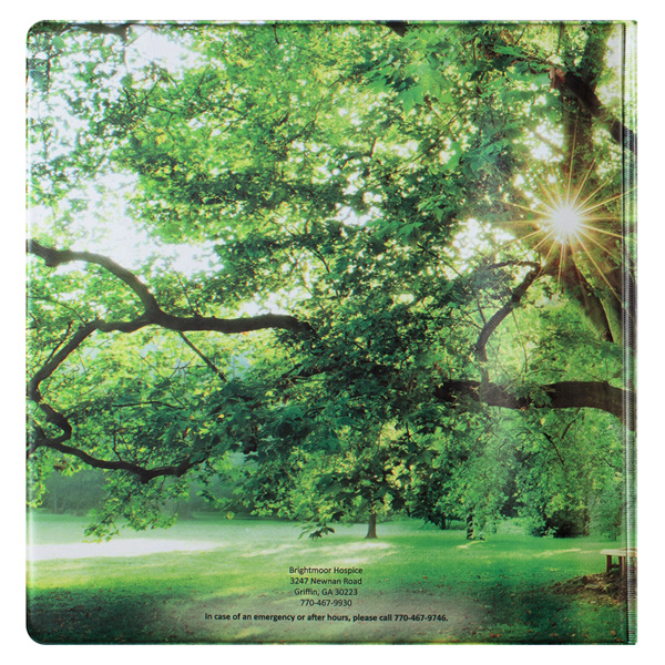 The massive green tree, a symbol of life, is the main element of design for Brightmoor Hospice's binder, which provides professional life care for ill people. The sunlight, which is slanting down through the leaves and branches of the tree, evokes a sense of tranquility and reflects a hope for long life. At the same time, a dominating green color personifies health.