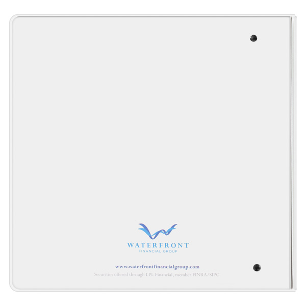 Four-color process printed on Side 1 of White French Calf Dull Vinyl. 3" metal ring mechanism.