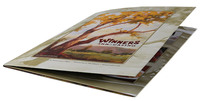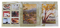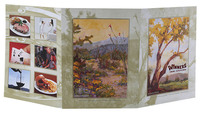 A medley of watercolor paintings and photographs bring Nevada's rugged mountains and a casino's hustle and bustle together in this tri-panel design for Winners Inn & Casino, based in Winnemucca, Nevada. Its wide array of images showcase both the natural setting and the indoor dining and activities at the venue, while its use of multiple imprint methods and coatings creates a totally unique tactile experience.