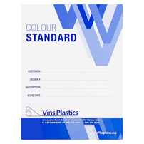 Blue V's indicate Vins Plastics is trusted and stable, while a space for customer and product info in the center shows the brand is detail-oriented. Contact information is easily accessible at the bottom of the cover.