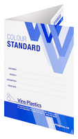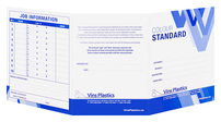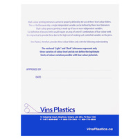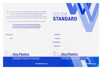 Blue V's indicate Vins Plastics is trusted and stable, while a space for customer and product info in the center shows the brand is detail-oriented. Contact information is easily accessible at the bottom of the cover.