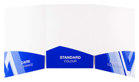 Pin This GraphicFour-color process printed on Side 1 of 12pt C1S White Semi-Gloss stock. Coated with Gloss Aqueous. B5 brochure slit on left pocket, with V4 business card slits on right pocket.