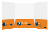 Pin This GraphicThree interior and exterior panels let you create six different designs or—better yet—establish a recurring theme throughout the product. Triple pockets organize 8 1/2" x 11" print materials. The left pocket is first to be revealed and is the most mobile, making it better for light reading and fewer papers, while the right pocket is protected under two panels for maximum security. The unglued center pocket is perfect for securing your most important documents, as this panel is the least mobile.