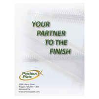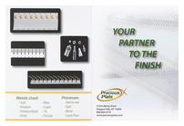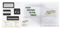 Precious Plate's name and gold oval logo describe its work electroplating precious metals. Faint cover photos encourage viewers to really focus on the design to see some of the metal plates the company makes.